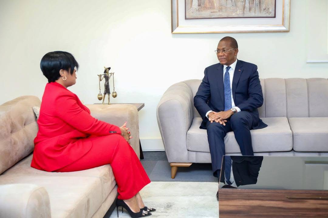 Le Ministre Bruno Koné, a reçu ce mardi 5 février 2025, au sein de son cabinet, la visite de Mme Danielle Lidégoué, épouse Cissé, Directrice des Affaires Financières du Ministère de la Construction du Logement et de l’Urbanisme, et Présidente de la Fondation BLOOM.