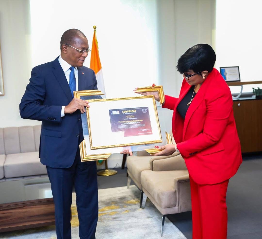 Mme Cissé a profité de cette occasion pour remettre au Ministre Bruno Koné un Certificat de Reconnaissance, décerné par l’UNESCO Côte d’Ivoire et l’ONU Femmes lors de ce dîner gala. Cette distinction souligne les actions de M. Koné en faveur des femmes et des jeunes filles.