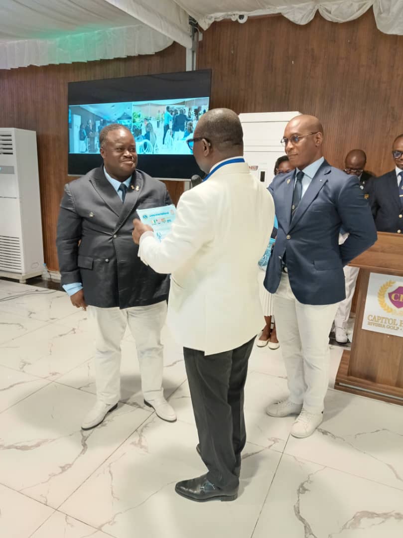Présents à cette cérémonie, les PDG, past district governor, Christiane DUNCAN, Daniel SAMPAH, Simon DIAKITE, la 2 ème Vice-gouverneur Nelly COULIBALY et un hôte de marque notamment le Gouverneur du district 403A3, YACOUBA BARRY. L’hôte de ce Samedi 04 Octobre, venu du Burkina Faso après avoir lui aussi félicité l’AGE et le comité d’organisation, s’est dit honoré de vivre une cérémonie d’intronisation dont l’ambiance, la tenue, la rigueur et la solennité plafonnent la hauteur des idéaux du Lions Club International. << Je me souviens il y a quelques années, de certaines intronisations qui se tenaient dans des lieux plus modestes, parfois même dans des maquis. Ce que j’ai vu ce soir me touche profondément : c’est une démonstration de sérieux, de respect et de prestige. Si nous continuons dans cette voie, j’en suis convaincu, les nouveaux membres resteront fidèles et engagés. Nous n’aurons plus ces pertes récurrentes de membres à la fin de chaque année, et nous pourrons croître de manière durable. >>
