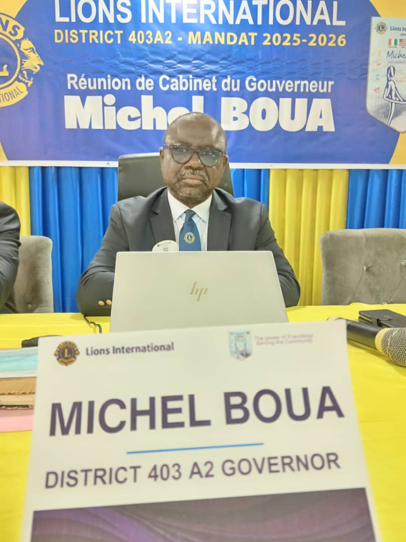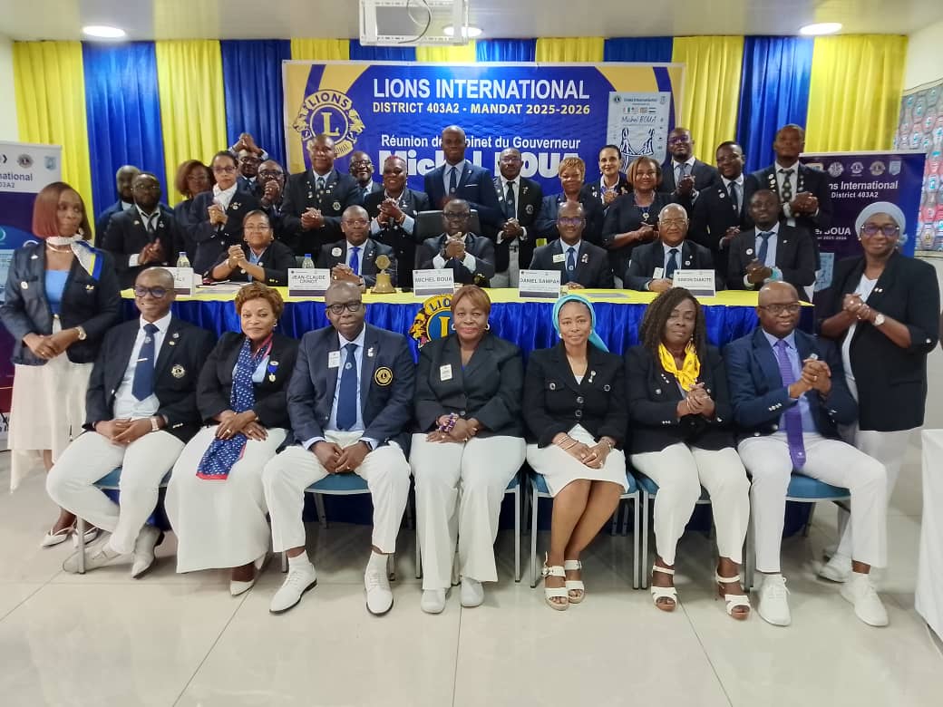 Le gouverneur lion du district 403 A2, Michel BOUA a tenu la 2 ème réunion de son cabinet ce Samedi 18 Octobre 2025 dans un hôtel de la place Abidjanaise. Les membres de son cabinet notamment en Côte d’Ivoire, Togo, Libéria et Sierra Leone se sont mobilisés faisant atteindre le quorum requis. Plusieurs points étaient inscrits à l’ordre du jour entre autres, les activités et les missions du gouverneur à travers les 4 pays, les activités Léos, les points sur la trésorerie du district, l’accroissement de l’effectif et les perspectives à court et à long terme. MICHEL OUA a ouvert la séance après la minute de méditation tout en précisant les objectifs de la réunion. <<Alors il faut savoir que chaque trimestre, nous avons un bilan à faire. Le bilan se fait avec des amis lions qui viennent de l’extérieur, du district auquel je la charge. J’ai la charge de la Côte d’Ivoire, du Togo, du Liberia, de la Sierra Leone. Donc la plupart de tous les délégués que vous voyez viennent de ces pays-là. Il faut quand même que chacun fasse l’état des lieux de ce qu’ils ont commencé à faire depuis le début du mandat. J’ai déjà visité ces pays et je suis en train de visiter tous les clubs de la Côte d’Ivoire. Donc si vous voulez, c’est une réunion bilan trimestriel. C’est ce que nous sommes en train de faire actuellement. >>
