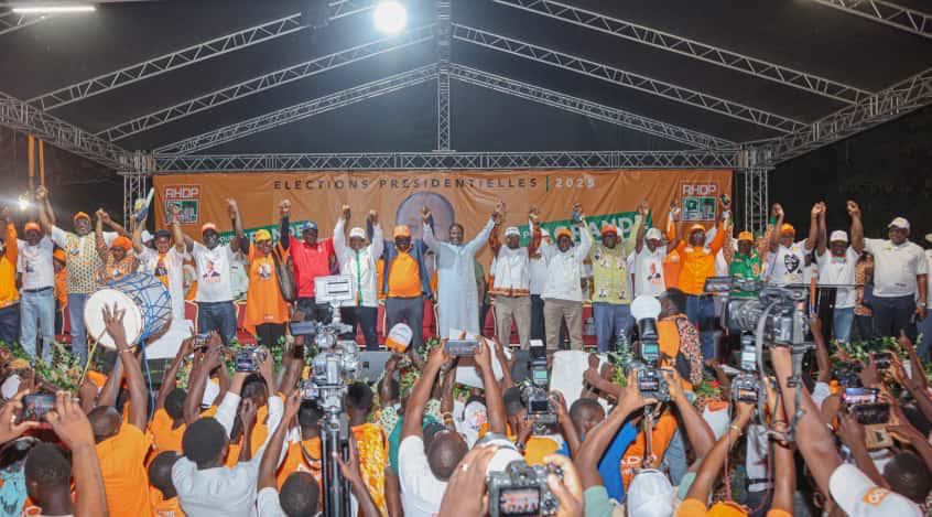 » C’est le samedi 25 octobre 2025, que nous aurons le vrai test. Il faut que vous sortiez massivement pour dire merci au Président Alassane Ouattara (…) Je vous demande de de sortir massivement pour qu’à partir de 15h, nous puissions dire que le match est plié », a-t-il déclaré.